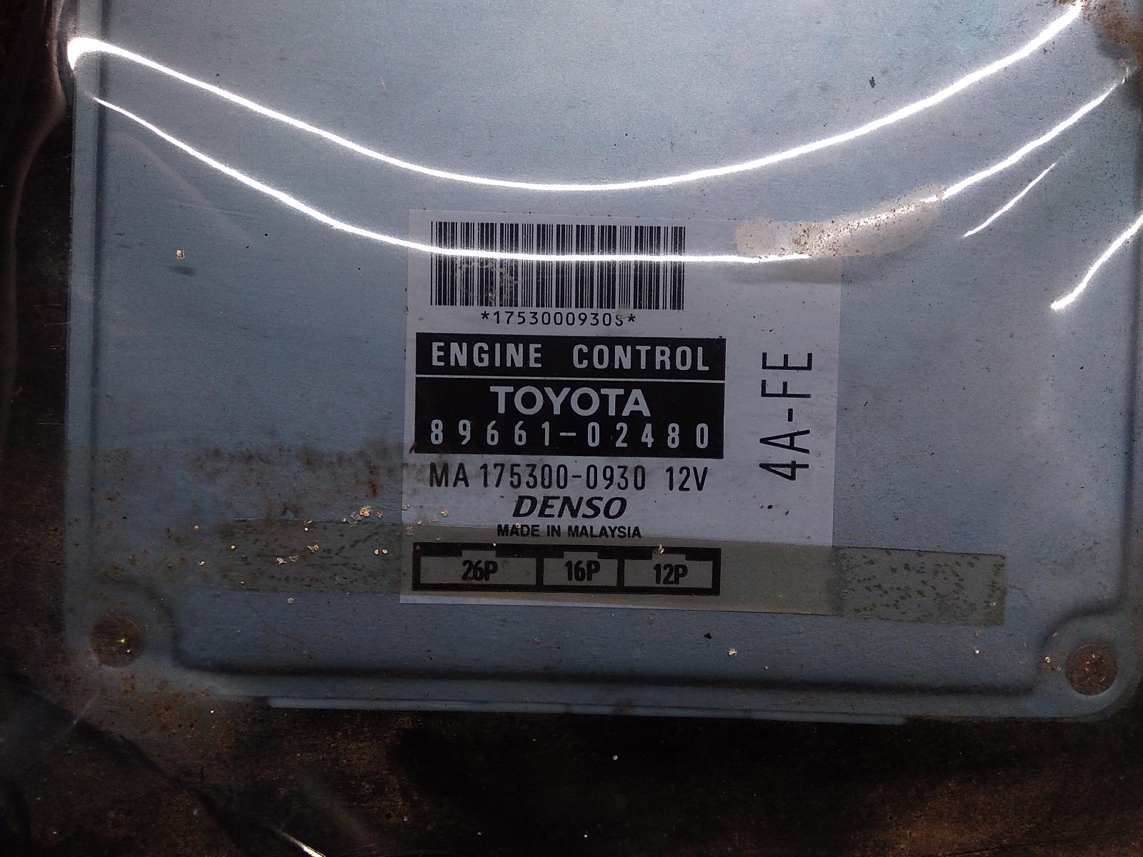 YEARS: 1994,1995,1996,1997,1998,1999 PRODUCT DESCRIPTION: ENGINE ECU, 1.6, 4AF, AUTO T/M, ECU ONLY, AE101, 09/94-10/99 PRODUCT ODO READING: 999999 PRODUCT COMMENTS: 89661 02480: 22459