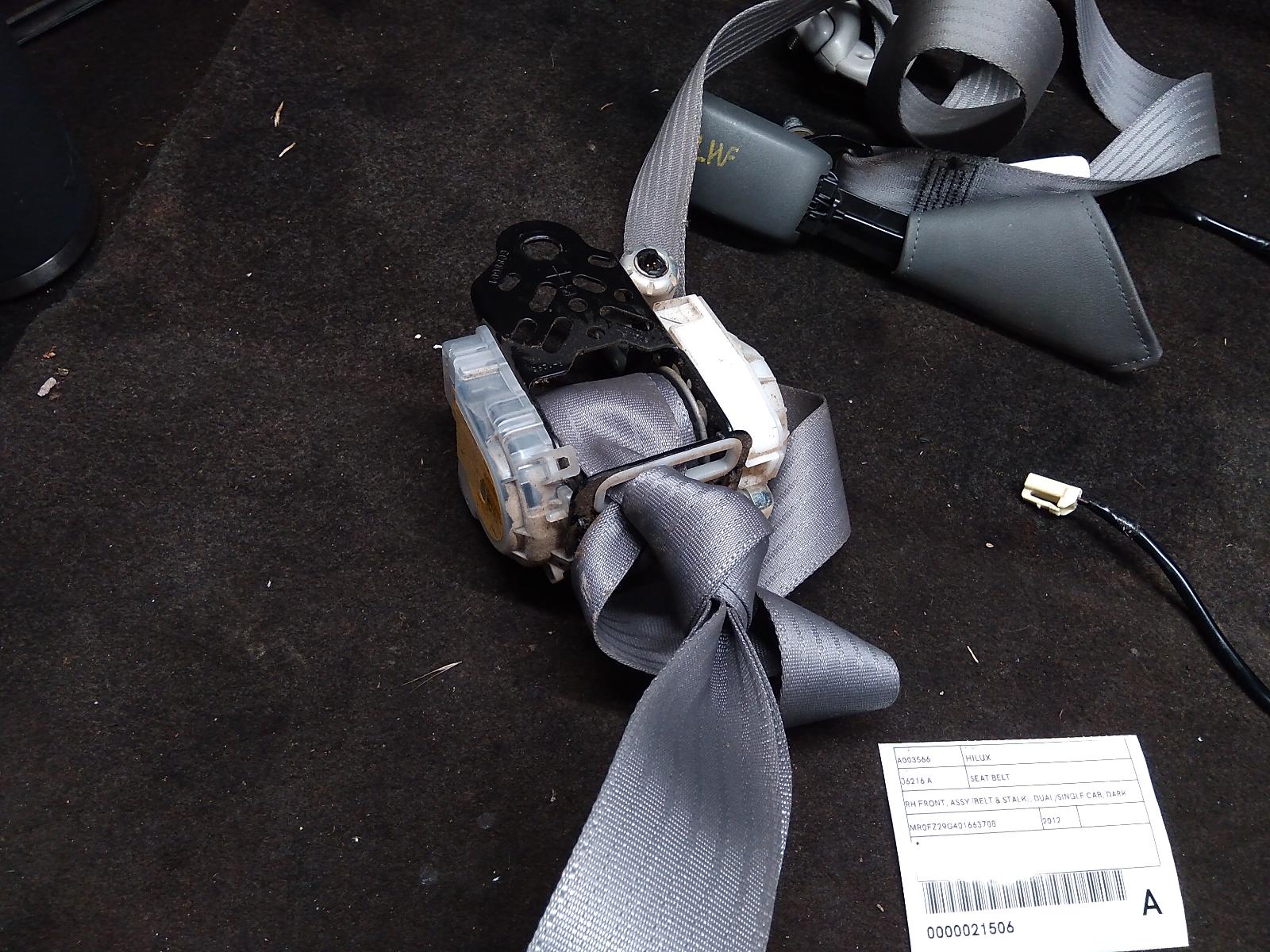 YEARS: 2011, 2012, 2013, 2014, 2015 PRODUCT DESCRIPTION: RH FRONT, ASSY (BELT & STALK), DUAL/SINGLE CAB, DARK GREY, 07/11-08/15 PRODUCT ODO READING: 241289 PRODUCT COMMENTS: