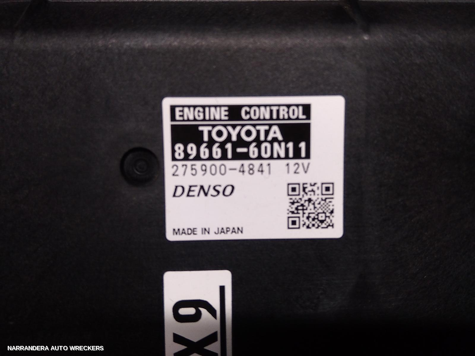 YEARS: 2011, 2012, 2013 PRODUCT DESCRIPTION: 150 SERIES, ENGINE ECU, 3.0, DIESEL, 1KD-FTV, AUTO, P/N 8966160N11, SEC SET (ECU/IMM/READER/KEY), 10/11-08/13 PRODUCT ODO READING: 197173 PRODUCT COMMENTS: