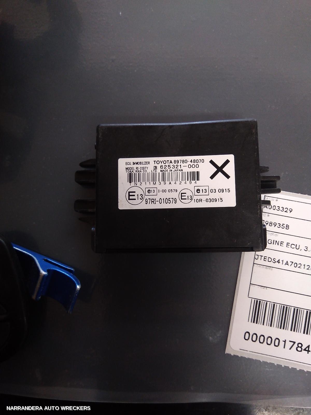 YEARS: 2007, 2008, 2009, 2010, 2011, 2012, 2013, 2014 PRODUCT DESCRIPTION: ENGINE ECU, 3.5, 2GR-FE, GSU40-GSU45, 89661-48F60, SEC SET (ECU/IMM/READER/KEY), 05/07-02/14 PRODUCT ODO READING: 129266 PRODUCT COMMENTS: