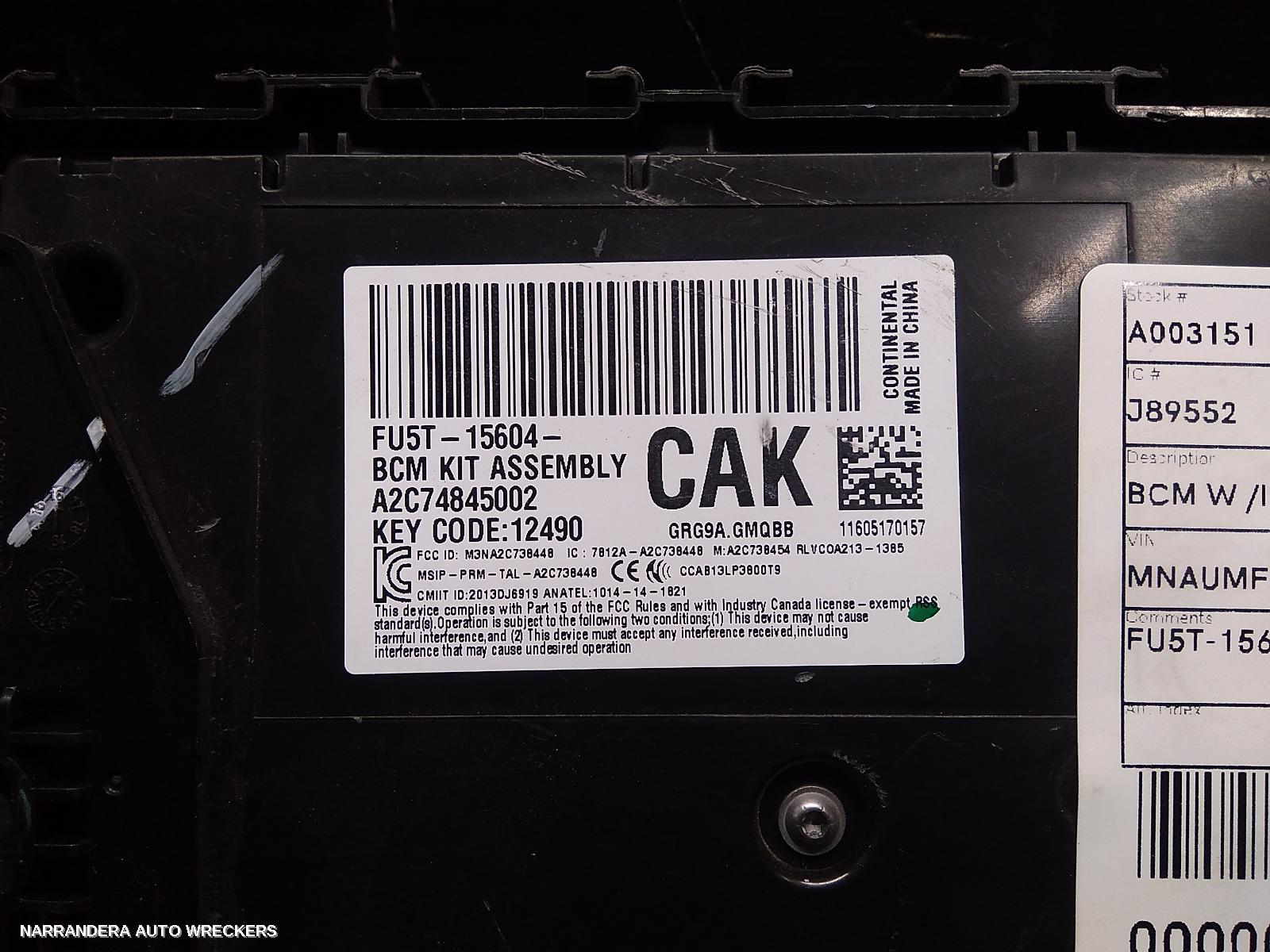 YEARS: 2015, 2016, 2017, 2018 PRODUCT DESCRIPTION: BCM W /INTEGRATED FUSE PANEL (UNDER DASH), 2.2/3.2, DIESEL, PX SERIES 2, P/N FU5T15604CAK, 06/15-06/18 PRODUCT ODO READING: 15056 PRODUCT COMMENTS: FU5T-15604-CAK: 9329